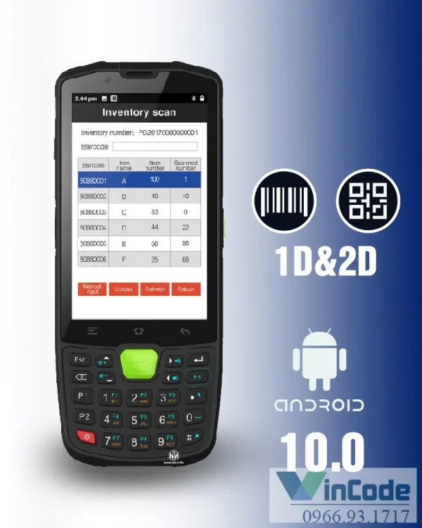 - Hệ điều hành linh hoạt: Máy chạy trên nền tảng Windows CE hoặc Android, giúp tích hợp dễ dàng với các phần mềm quản lý kho hiện có.