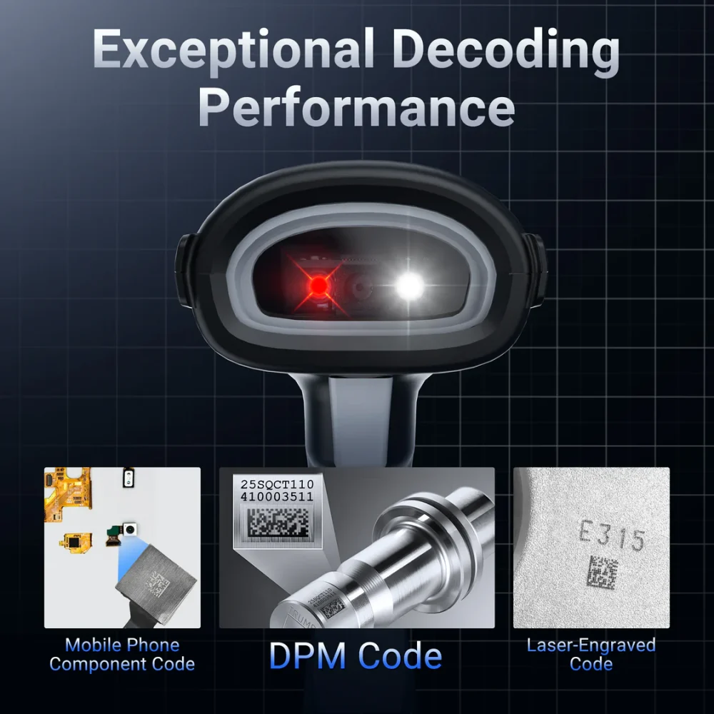 Chế độ Rảnh Tay (Kèm Chân Đế Cao Cấp): Với chân đế đi kèm và chức năng Quét Liên Tục (Continuous Scan Mode), nhân viên thu ngân hoặc người đóng gói chỉ cần lướt sản phẩm qua máy, tốc độ xử lý hàng hóa sẽ tăng vọt.