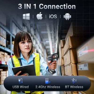 Tự do di chuyển (Kết nối 3-Trong-1): Không bị trói buộc bởi dây cáp rườm rà. Bạn có thể sử dụng Bluetooth để kết nối với điện thoại/tablet, hoặc dùng USB Dongle 2.4G để quét ở khoảng cách lên đến 328ft (100m) trong không gian mở (114ft nếu có vật cản). Vẫn hỗ trợ cắm cáp USB khi cần thiết.